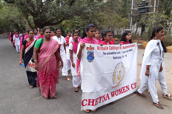 Chetna Women’s cell has been designed to act as a catalyst for promoting Women Empowerment and Gender Equality for the upliftment of young women in society. In accordance Chetna Women cell (CWC), as a strong kernel has made an effort to create a platform to express their needs and priorities and help to achieve a life free from harm and discrimination. Chetna Women Cell was incepted in 1999 by Nirmala College for Women (Autonomous),with a view to empower women, redress grievance of women both faculty and students. It has a profound mission of educating women, creating awareness, providing motivation and development in various fields. Women’s cell organizes lectures, competitions, awareness program and educating women on issues like health, legal, economic and self –reliance. Women are placed in a position that demands a woman to have superior education to attain economic, social and political equality.