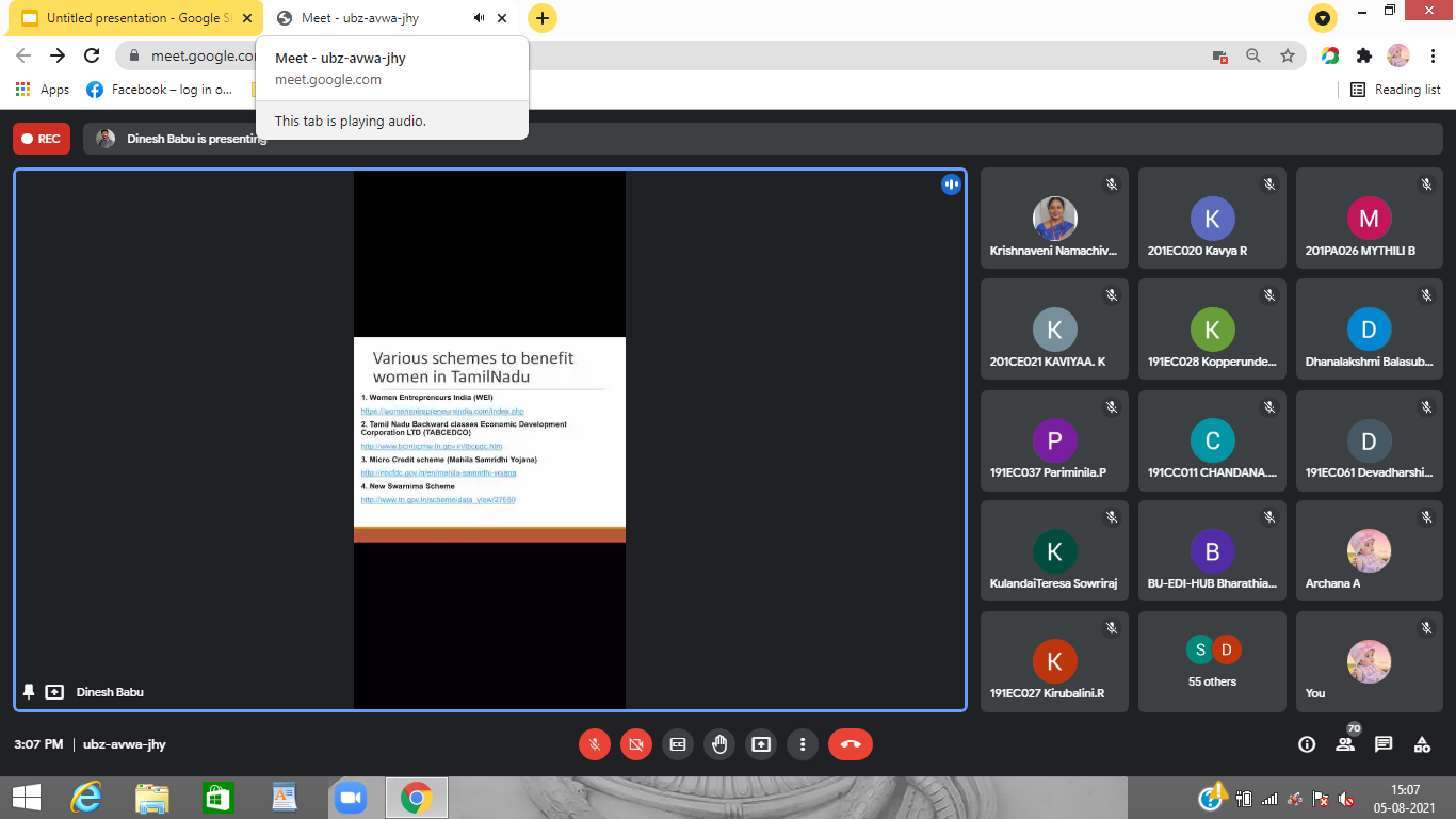 Handloom saree sales are coordinated through collaboration with handloom weavers. Also, EDC is keen to organize programs to commemorate World Entrepreneurship Day, National Handloom Day and International Millet Year 2023 to create awareness among the students.