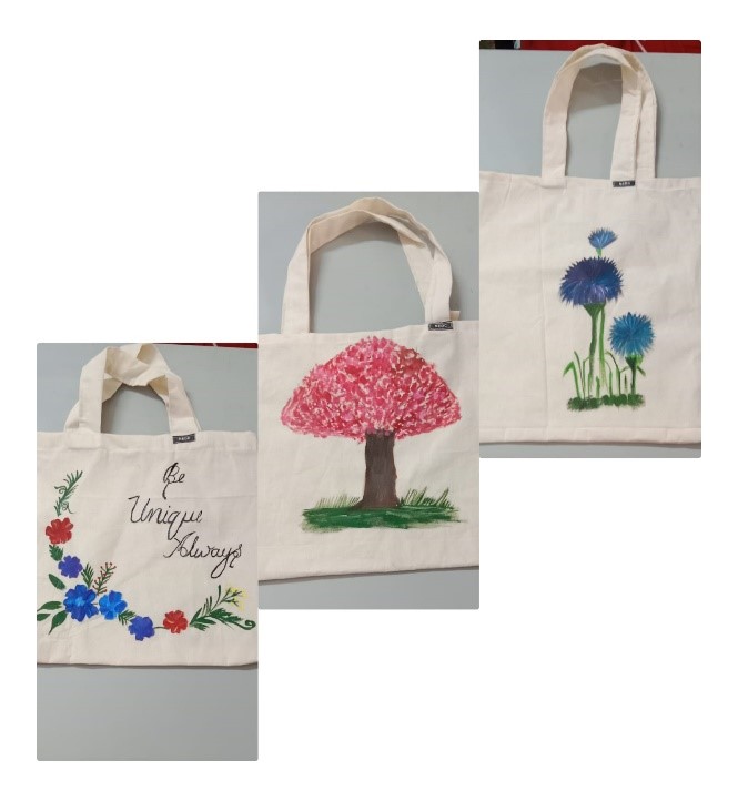 One of the best practices of EDC is the production of eco-friendly tote bags with fabric painting by our students which are sold in the campus under the label 'NEDC Designers'.