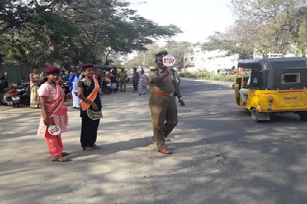 - Students engage in managing traffic in front of the college campus in-order to avoid the crowding of traffic in front of the institution.